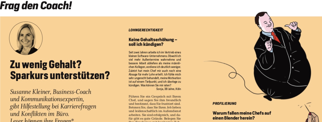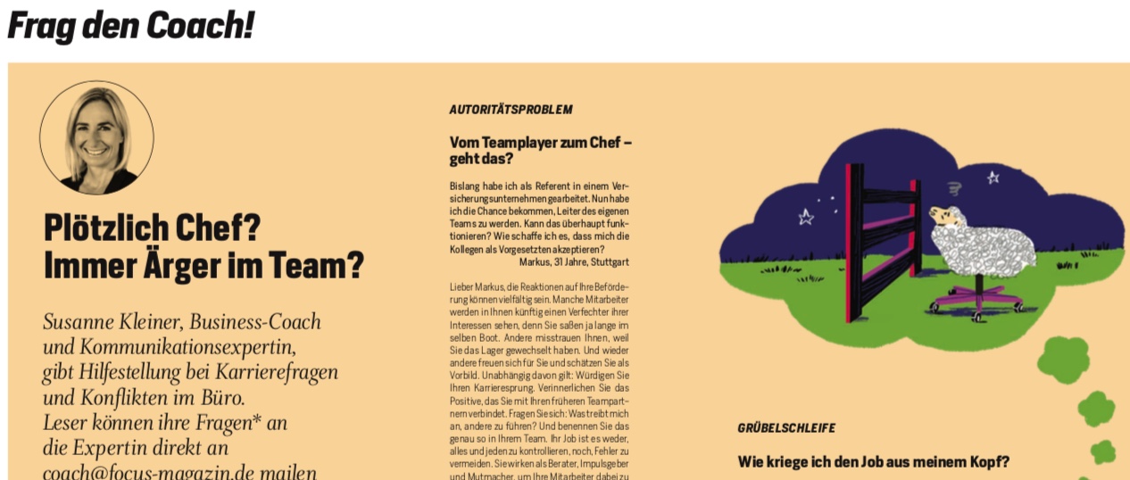 Lohngerechtigkeit, Profilierungssucht oder Loyalitätskonflikte: Für Focus Business 01/19 beantworte ich drei Fragen zu Konflikten und Karrierethemen.