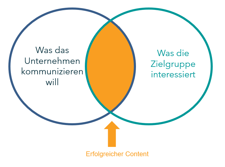 Um Beiträge zu posten, die eine hohe Sichtbarkeit generieren, brauchen Sie in erster Linie möglichst viele Interaktionen. Und um viele Likes, Kommentare, Klicks und sonstige Interaktionen zu erhalten, brauchen Sie Beiträge, die die magische Schnittmenge treffen; und zwar die Schnittmenge, zwischen dem, was Sie als Unternehmen kommunizieren möchten und dem, was die Zielgruppe interessiert.