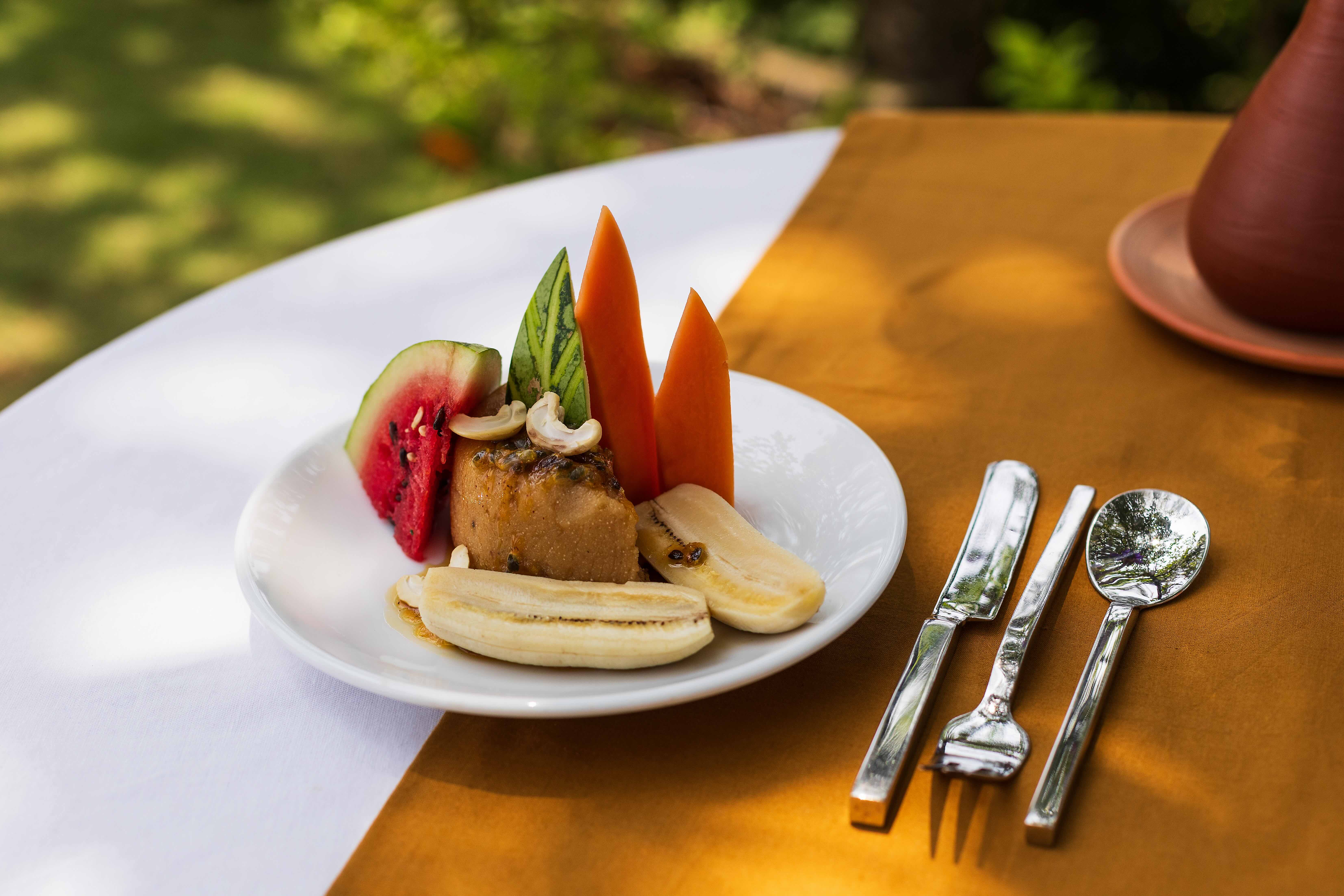 Wichtig ist es für mich, zu genießen. Ich genieße es, ayurvedisch zu kochen und liebe die Küche aus Sri Lanka sehr: Curry, Koriander, Kardamon, Zimt, Chili und das frische Gemüse und Obst. Grünes Sambol, einen Kräutersalat, bereite ich in Deutschland aus Koriander und Petersilie mit Limette und eingeweichten Kokosraspeln zu. Fisch und Hühnchen, die zur ayurvedischen Küche gehören, lasse ich meistens weg.
