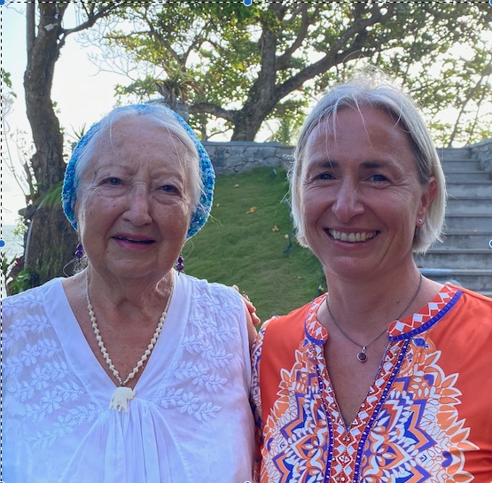 Damit wirke ich der trockenen Haut oder der Gelenksteife entgegen, die ich in den Wechseljahren wahrnehme. Der Ayurveda hilft dabei, mein Vata – also das Luft- und Äther-Element – zu beruhigen und alle Bioenergien ins Gleichgewicht zu bringen. Vata steht für das Prinzip Bewegung und hält mich wach. Auf dem Foto seht Ihr mich mit Gisela im Juli 2023. Sie war seinerzeit 87 Jahre alt und kommt immer noch jedes Jahr ein bis zwei Mal nach Sri Lanka, um eine Ayurvedakur zu machen. Gisela ist für mich ein Vorbild, wenn es darum geht, lebensfroh zu altern.
